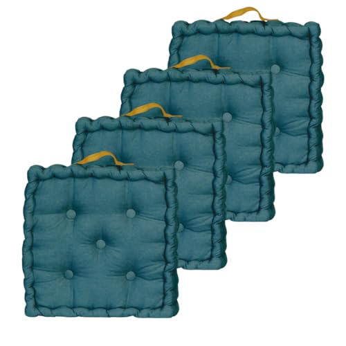 ATOUT CIEL Set med 4 golvkuddar 40 x 40 cm med kontrasterande handtag, ankblå