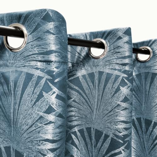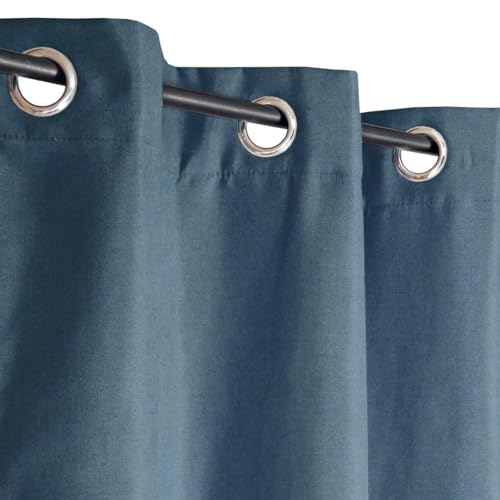 Atout Ciel Borstad termisk gardin med öljetter 140 x 240 cm, klar att installera, blå