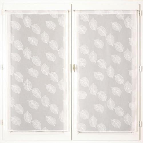 Atout Ciel Par tryckta voilegardiner, 50% återvunnen polyester, med stångpass redo att installeras, vit, 2 x 60 x 120 cm