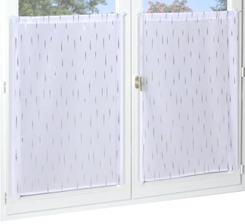 Atout Ciel Ett par tryckta gardiner i silver klar att installera stång, 2 x 60 x 120 cm, vit