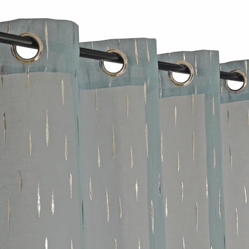 Atout Ciel Silvertryckt slöja gardin med öljetter 140 x 240 cm redo att installera, blå