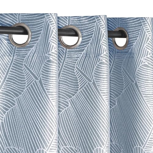 Atout Ciel Vegetal Jacquard gardin med öljetter 140 x 240 cm, redo att läggas, blå