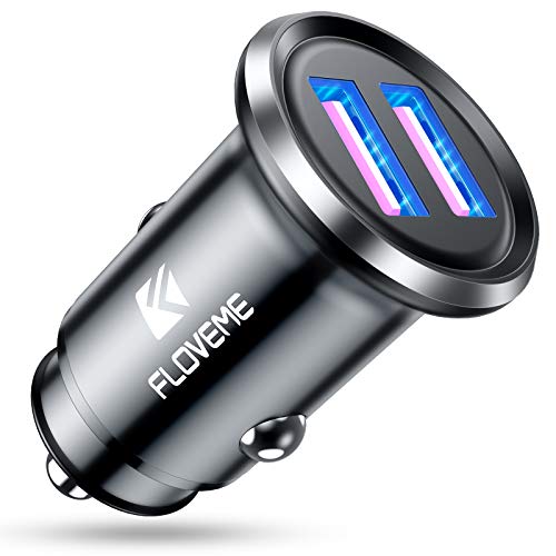 FLOVEME Billaddare Cigarettändare USB-adapter snabbladdning, dubbel QC3.0-port 36 W/6A billaddare USB, mini metall bil laddare cigarettändare med LED-ljus, kompatibel med iPhone Samsung svart