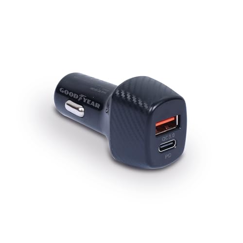 Goodyear 1 x USB Q.C 3.0 och 1 x USB-C PD20W laddare, snabbladdning av mobiltelefon, cigarettändare för bil, 2 x USB/USB-C-portar