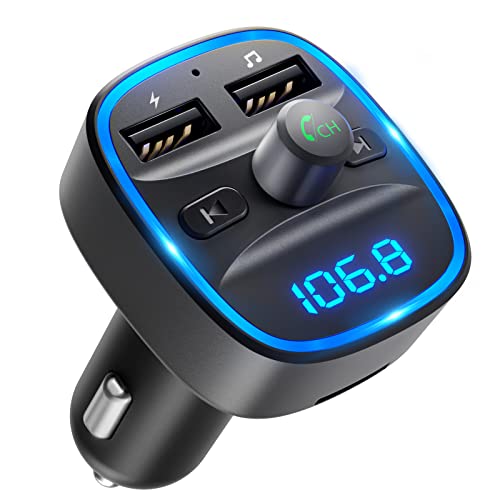 LENCENT Bluetooth FM Sändare Adapter för Bil, Bluetooth Transmitter, Bilradioadapter med Dubbla USB-portar, Cigarettändare med Handsfree, USB Drivenheter, Mörkgrå
