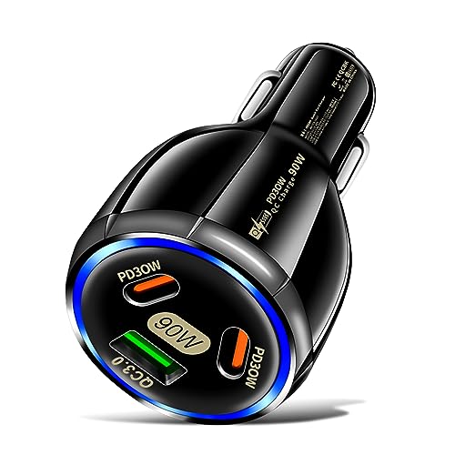 JADUFHU 90W USB C billaddare bil, cigarettändare QC3.0/PD30W, passar USB C billaddare för IPhone, surfplatta, Samsung, Huawei, Xiaomi - svart