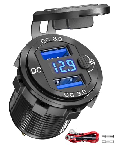 Quick Charge 3.0 USB-uttag 12 V bil med strömbrytare – billaddare USB-inbyggt uttag 24 V vattentät cigarettändare burk med blå LED voltmeter, spänningsdisplay för motorcykel, båt, lastbil, husvagn