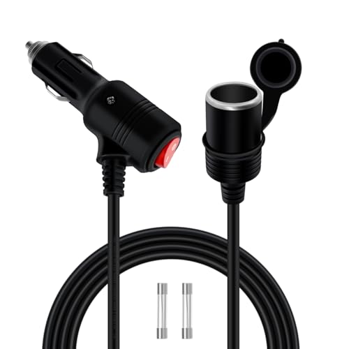 Bil cigarettändare förlängningskabel kontakt hane till hona uttag med på/av-knapp och indikatorlampa med 10 A säkring 18 AWG sladd 3 m 12 V 24 V (svart)