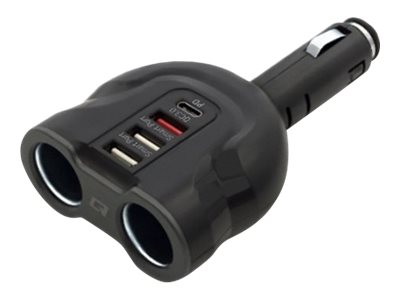 Qoltec - Strömadapter För Bil - 52 Watt - 3.1 A - Pd, Qc 3.0 (Usb, 2 X Usb, 24 Pin Usb-C, 2 X Bil Cigarettändare) - Svart