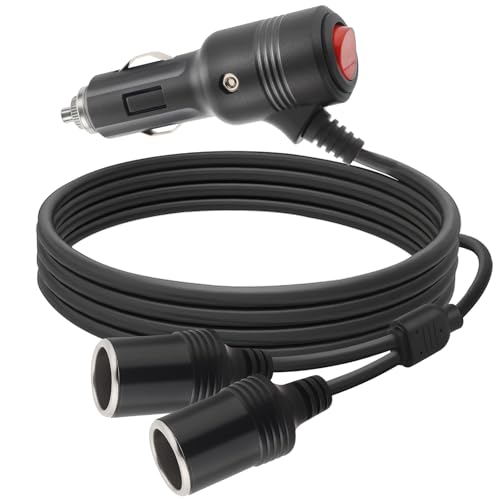 RIIEYOCA 10 tum 12 v 24 v cigarettändare splitter adapter med på/av-brytare, bil cigarettändare 1 hane till 2 honuttag Y splitter strömkabel