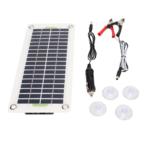 TRAMILY Solcellsbatteriladdare för bilbatteri, vattentät bärbar amorf solpanel 12 V 2,5 W med batteriklämma för cigarettändare för bil, motorcykel, båt, RV, släpvagn etc.