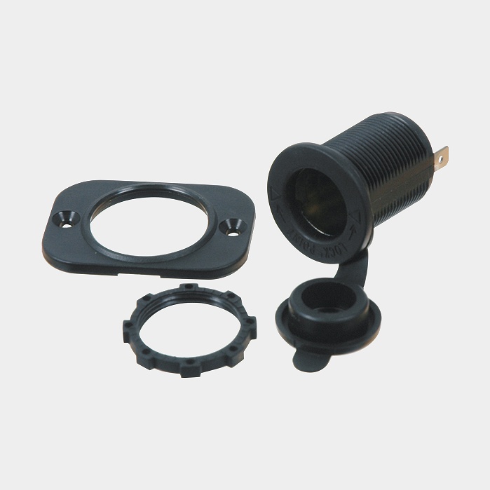 Blue Sea Systems Cigarettuttag Dash Socket With Watertight Cap, infällt, rektangulärt, Ø28.58 mm, 12 V, 15 A, med gänga + kabellåsning