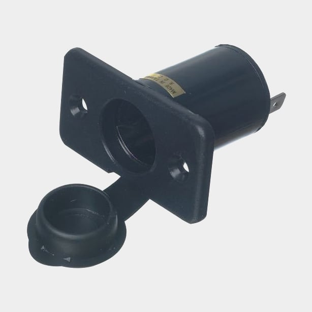 Marinco Cigarettuttag Receptacle, infällt, rektangulärt, Ø28.58 mm, 12 V, 15 A, med kabellåsning