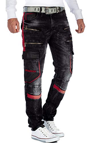 Cipo & Baxx herrjeans – snyggt denimmode med unik design | höga distinkta detaljer | normal & smal passform, biker & cargolook | stentvättade och använda effekter för män, Svart – 40, 32W / 34L