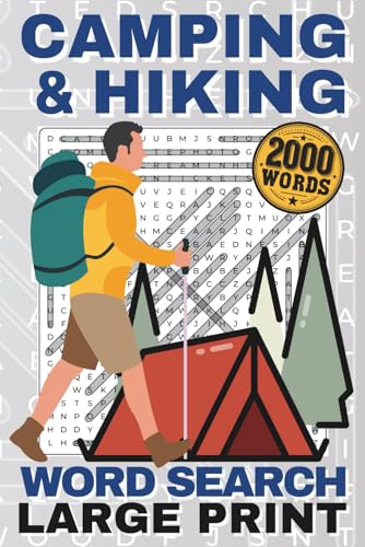 CAMPING & HIKING WORD SEARCH LARGE PRINT: Relaxing Word Find Puzzle Book – 100 Fun Themes, 2000 NEW Words to Circle – Brain Training Activity Game for Kids, Teens, Adults & Seniors