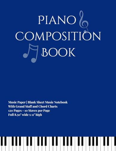 Piano Composition Notebook.: Music Manuscript Paper with Grand Staff, Piano Chord Charts and Circle of Fifths.
