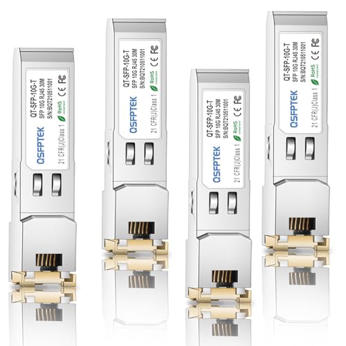 QSFPTEK (4-pack 10GBASE-T SFP+ till RJ45, 1,25G/2,5G/5G/10Gb RJ45 koppar Mini-GBIC sändtagare för Cisco SFP-10G-T-S, Ubiquiti UF-RJ45-10G, Mikrotik, Netgear, D-Link, Supermicro, CAT6A/CAT7, upp till