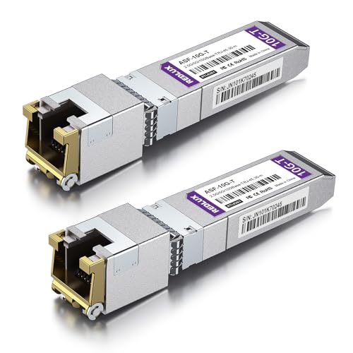 REDLUX 2,5/5/10G SFP+ till RJ45-modul, CAT.6a/CAT7 RJ45-kontakt, upp till 30 m, 10 GBase-T kopparsändtagare kompatibel med Cisco SFP-10G-T, Ubiquiti UF-RJ45-10G, Meraki, Fortinet, D-Link, etc. 2-pack
