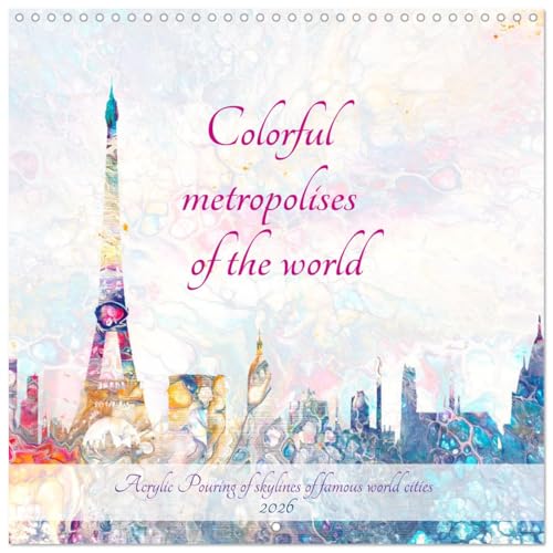 Colorful metropolises of the world - Acrylic Pouring of skylines of famous world cities (Wall Calendar 2026 12 × 12 Inch) CALVENDO 12 Month Wall Calendar: Silhouettes of big cities on Acrylic Pouring