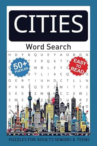 Cities Word Search Puzzle Book: Easy to Read Print about Cities, Landmarks, Countries, Capitals, Skylines, Travel, Culture, Architecture, Tourism, ... for Vacations, Holidays and Relaxation