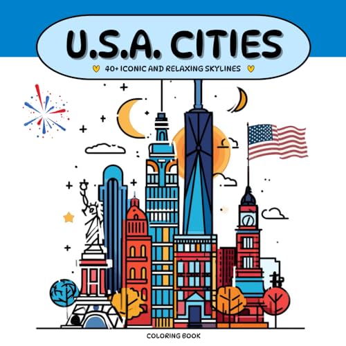 Usa Cities Coloring Book: Skylines, Iconic Buildings, Symbols of The Most Beautiful Cities in the United States of America for Mindful Relaxation and Stress Rilief