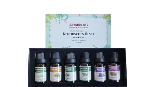 Aktobis eterisk olja, 100% naturlig, 6 x 10 ml, lavendel, timjan, eukalyptus, citrongräs, rosmarin och bergamott
