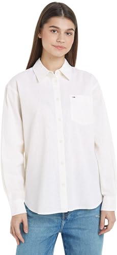Tommy Jeans Dam TJW Boxy Stripe Linne Skjorta, Citronskal/Rand, L, Citronskal/rand, L