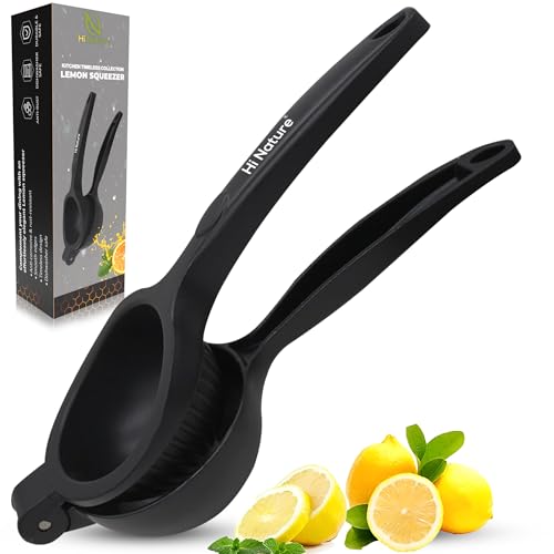 HI NATURE™ Citronpress i Metall – Manuell Citruspress i Tung Zinklegering – Juicepress för Citron, Lime & Apelsin – Ergonomisk, Hållbar & Lätt att Rengöra – Svart