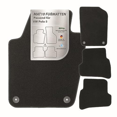 MAT10 – Silver-Line: VW Polo V småbilar och Cross och CityVan årsmodell 2009–03 – 2014–05 bilgolvmattor bilmatta velour premiumkvalitet 4-delad svart garanterad passform
