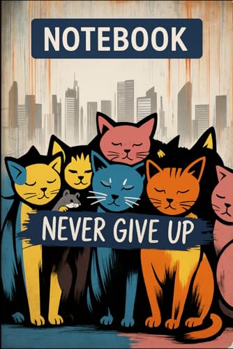 Never Give Up Cat Notebook – Cute City Cats Journal with Motivational Message | 6x9 Blank Lined: Whimsical Cats with City Skyline | DREAM BIG Message ... | Ideal for Cat Lovers, Writers, & Students