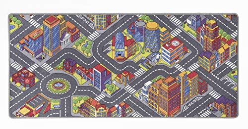 andiamo Barn vägkarta Game City, mjuk barn gatumatta, rolig lekmatta i en stor bydesign, GUT/Prodis godkänd, storlek: 95 x 200 cm