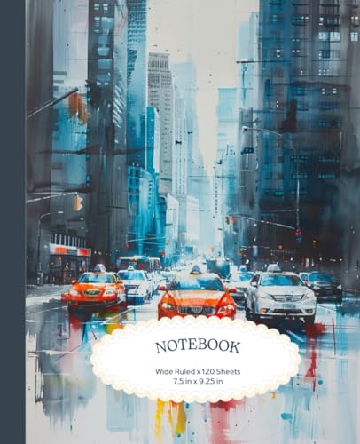 120-Page Lined Notebook, Modern City in Blue Tones: 7.5" x 9.25" Stylish Urban Scene — Great for Professionals, Students & Creatives