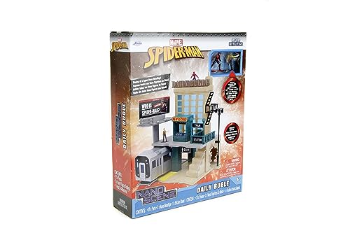 Jada Toys 253225012 - Marvel Nano Scene New York City Deluxe Lekvärld - Marvel Nano Scene New York City Deluxe, Inkluderar 2 Nanofigurer, Jonah Jameson och Spiderman Evergreen-Figur, 4 cm