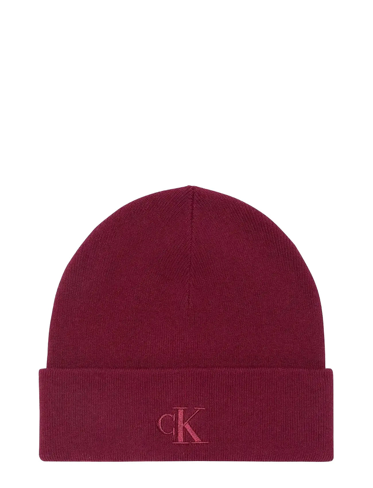 Calvin Klein Ck Fine Rib Beanie - Burgundy - ONE SIZE