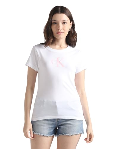 Calvin Klein jeans dam satin ck slim t-shirt S/S t-shirts, PVC vit, 3XL
