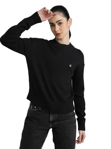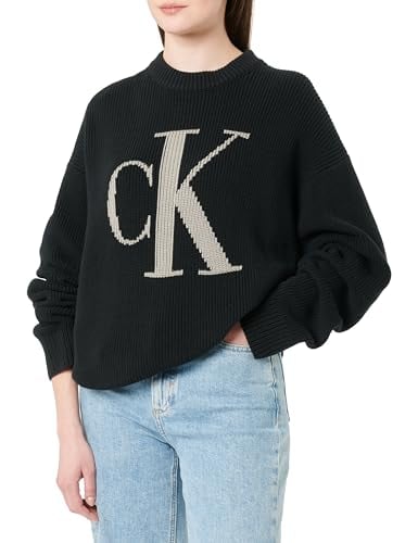 Calvin Klein jeans damlogotyp Intarsia normal tröja pullover tröja, svart (Ck svart, L, Ck svart, L