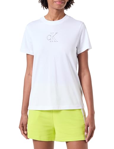 Calvin Klein Jeans dam konturerad CK normal T-tröja S/S t-shirt, ljus vit, XS, Kritvit, XS