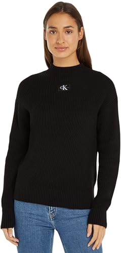 Calvin Klein jeans dam CK Intarsia tröja med hög hals J20J224799 pullover tröja, svart (k svart), M, Svart (k svart), M