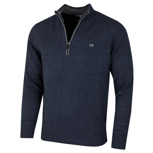 Calvin Klein herr 2023 stickad bomull 1/2 blixtlås golf CK topp tröja, Mörk ocean Marl, L