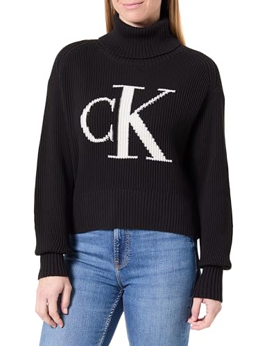 Calvin Klein jeans dam CK Intarsia tröja med hög hals J20J224799 pullover tröja, svart (k svart), L, Svart (k svart), L
