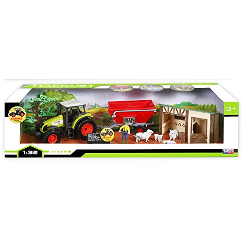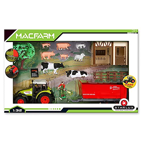 Starluxx – Coffret Traktor Claas Celtis 456 med Remorque, får och massor av tillbehör – pall bondgård – 1: 32E