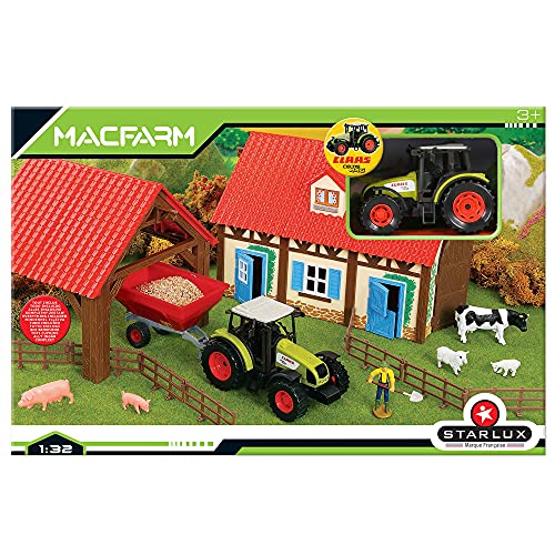 STARLUX – Komplett bondgårdslåda med Claas Celtis 446-traktor, djur, gårdskropp och tillbehör - skala 1/32 - gårdsområde - Från 3 år - 802021