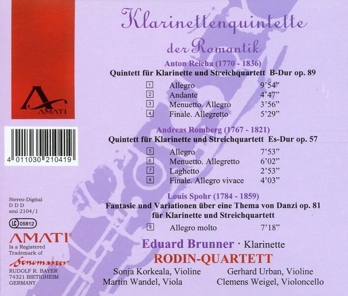 Eduard Brunner Clarinet Quartets Of Roman CD