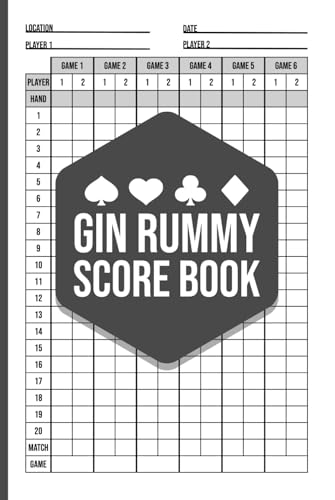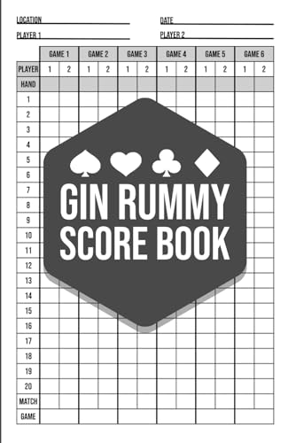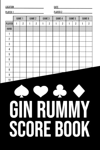 Gin Rummy Score Book – 2 Player Game Log (Hardcover): Track over 600 Gin Rummy games with this compact score pad for two players – clean layout, 100+ pages, ideal for game nights at home or on the go.