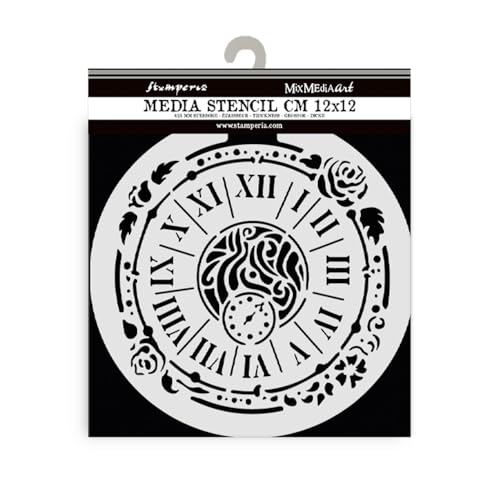 Stamperia - Thick Stencils for Scrapbooks, Albums, Cards, Bullet Journalling, and More, Flexible Material, Easy to Clean, Perfect for Hobbies, Crafts and Gifting (House of Roses, Clock)