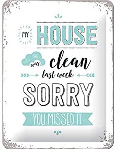 Nostalgic-Art Plåtskylt i retrostil, My House was clean – Presentidé för nostalgiälskare, av metall, Deko vintagedesign, 15 x 20 cm