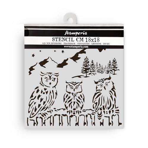 Stamperia - Thick Stencils for Scrapbooks, Albums, Cards, Bullet Journalling, and More, Flexible Material, Easy to Clean, Perfect for Hobbies, Crafts and Gifting (The Owl’s House, Owls)