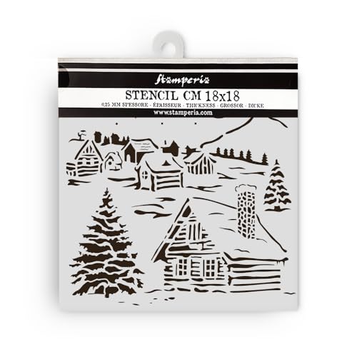 Stamperia - Thick Stencils for Scrapbooks, Albums, Cards, Bullet Journalling, and More, Flexible Material, Easy to Clean, Perfect for Hobbies, Crafts and Gifting (The Owl’s House, Snowflakes)