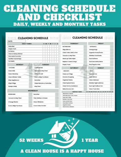 Cleaning Schedule and Checklist: Daily, Weekly and Monthly Tasks, 52 Weeks/1 Year - Stay Organized and Keep Your Home Spotless! A Clean House is a Happy House. 8,5x11 inch.