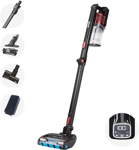 Shark sladdlös stickdammsugare, DuoClean, anti-hair wrap technology, motoriserat husdjursfäste, flera ytor och 20 cm sprickmunstycke, 60 minuters batteritid, svart/röd